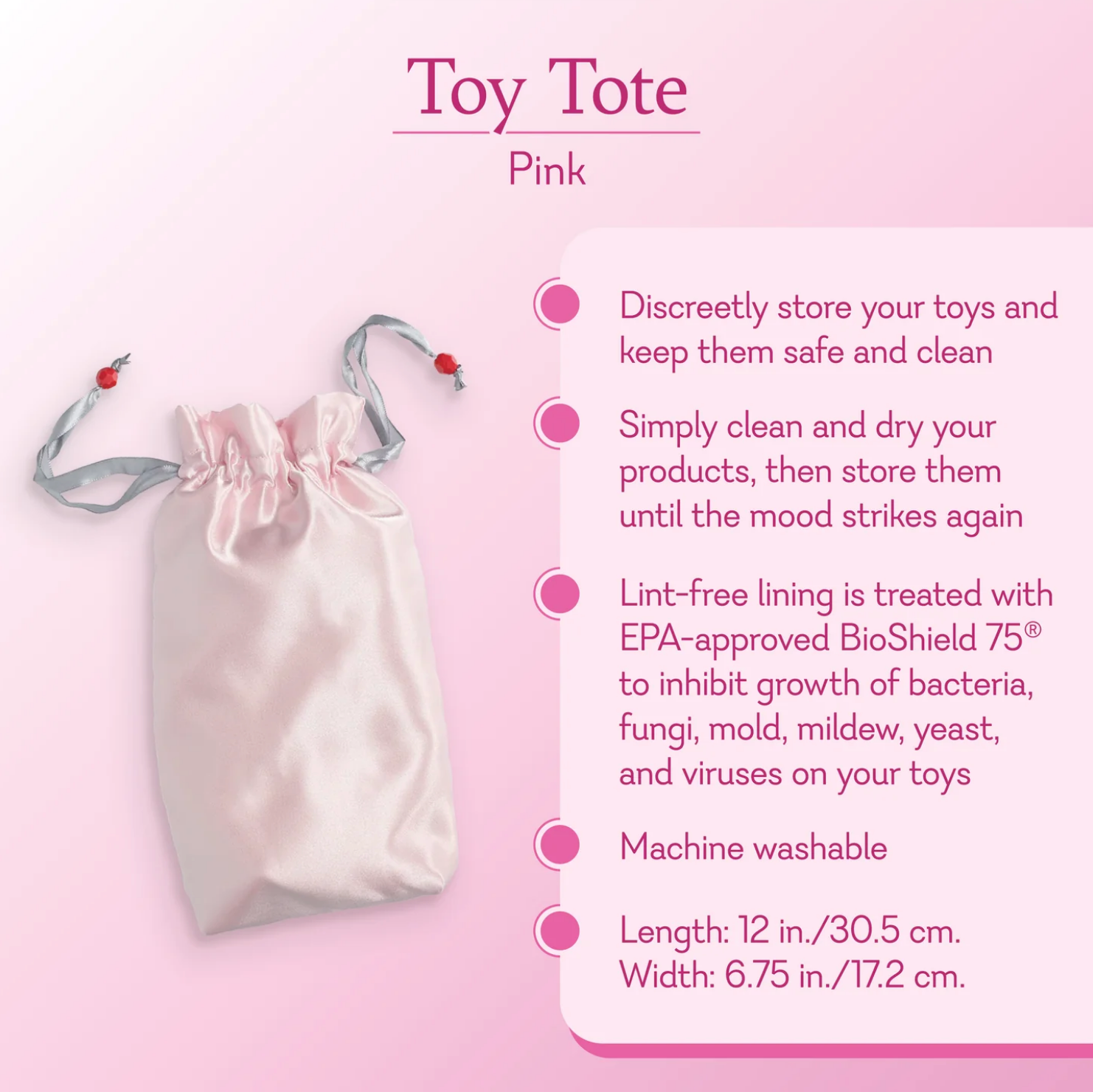 You have a special place for everything in your house why should your sex toys be any different? Discreetly store your toys and keep them safe and clean with the Toy Tote. This storage bag keeps your favorite products out of sight and away, protecting your toys from dust, bacteria, and curious eyes. Simply use, clean, and dry your products, then store them until the mood strikes again.